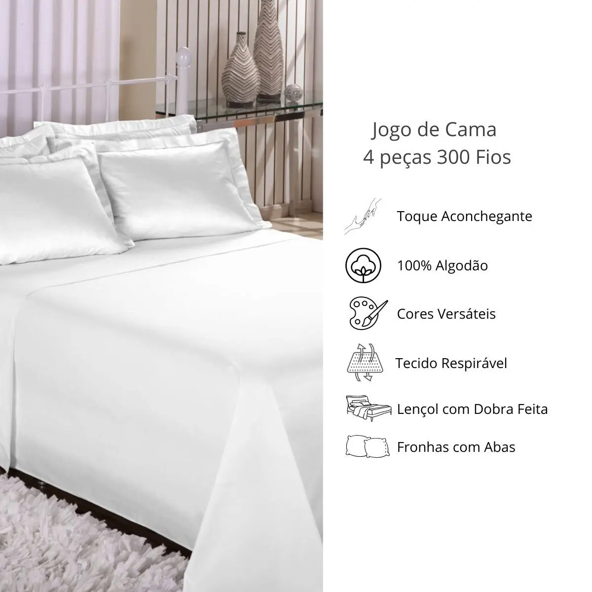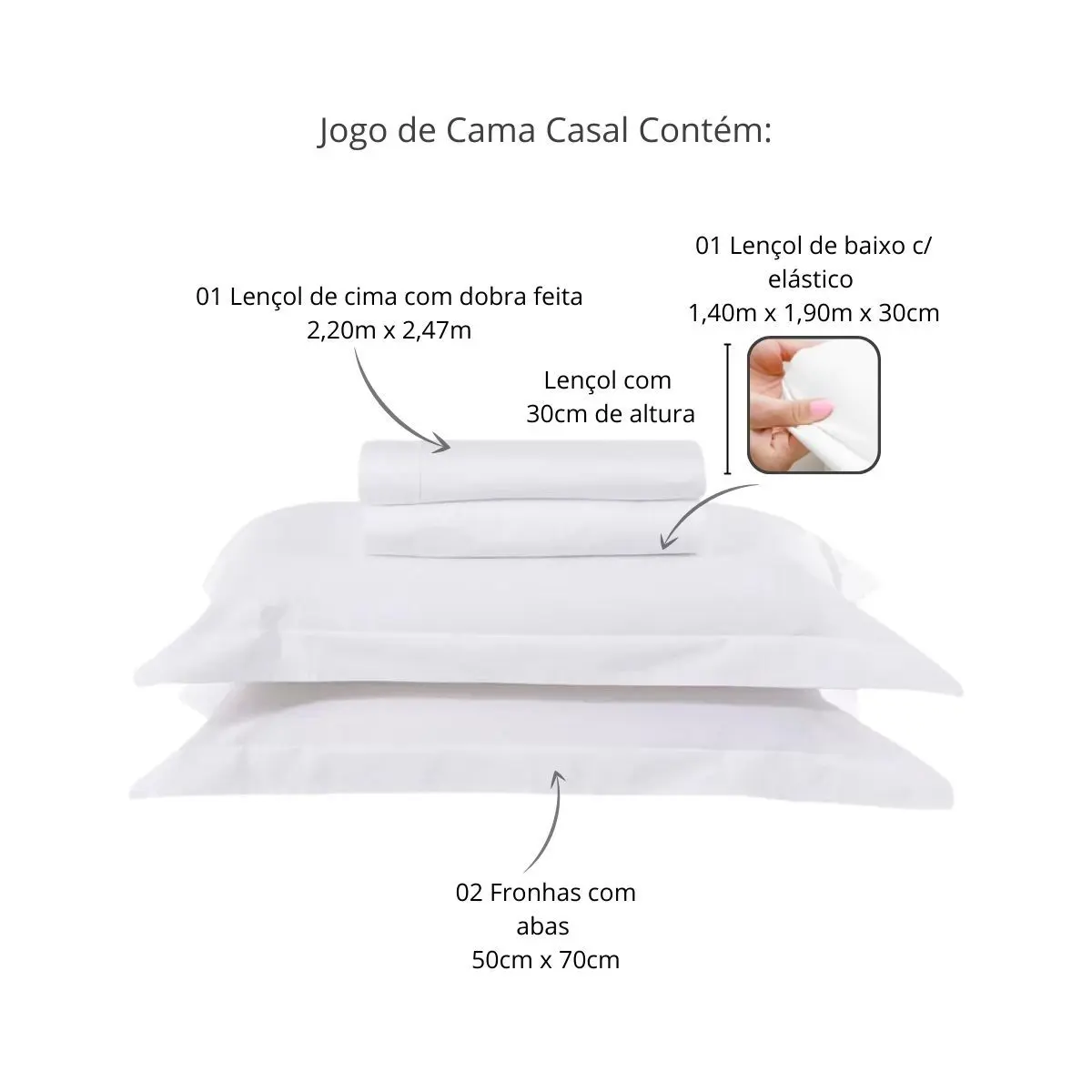 Feito com tecido super macio e de alta qualidade ele vem com lençol com dobra feita, lençol com elástico para colchão e fronhas com abas o que facilita a montagem de uma linda cama além de confortável.