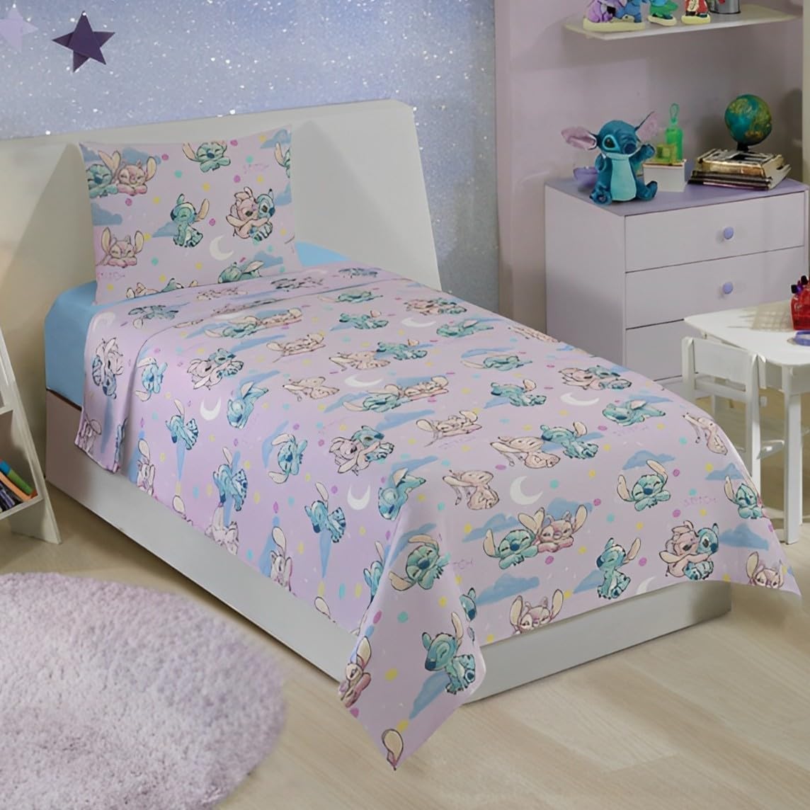 Jogo de Cama Infantil Stitch e Angel Lilás 3 Peças Lepper