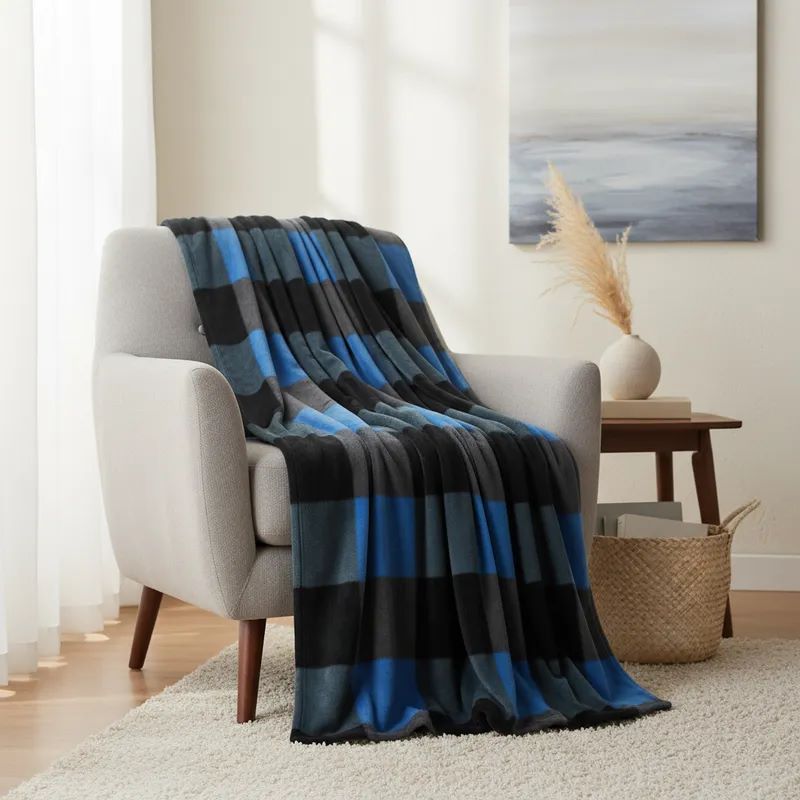 Confeccionada em microfibra fleece em tamanho de casal 1,80×2,20m a manta possui toque macio e estampa xadrez.