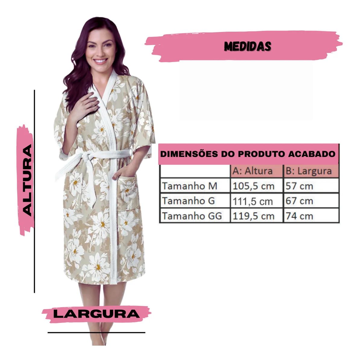 Roupão Aveludado Adulto Quimono Estampa Provenca G Lepper