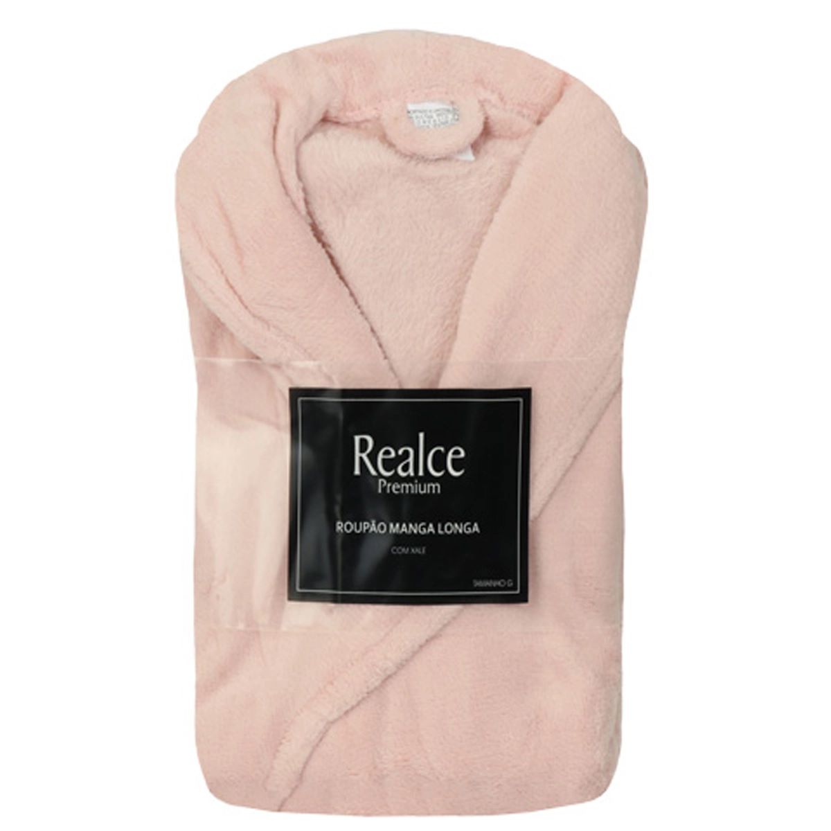 Roupão de Microfibra Basic Liso Realce Premium Rosa Claro G